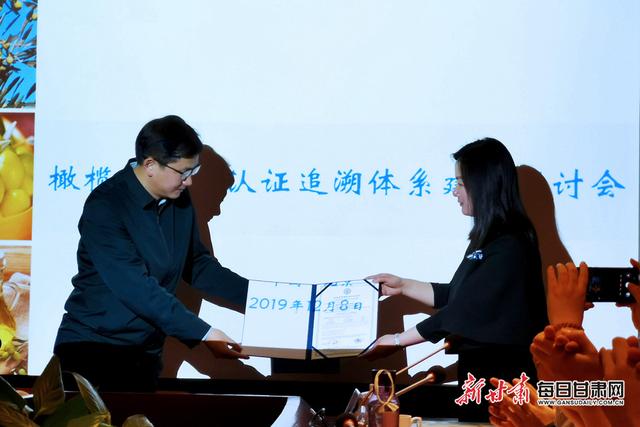 會(huì)上,主辦方向隴南市祥宇油橄欖開(kāi)發(fā)有限責(zé)任公司頒發(fā)了中國(guó)首張?zhí)丶?jí)初榨橄欖油認(rèn)證證書。