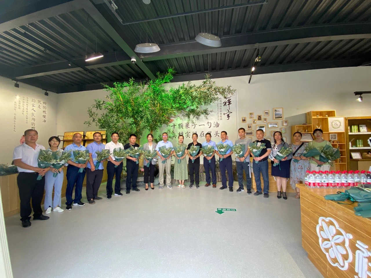 在產(chǎn)品體驗區(qū)劉玉紅董事長向趙校長一行介紹了祥宇特級初榨橄欖油、橄欖茶、橄欖菜、橄欖保健品等系列產(chǎn)品,