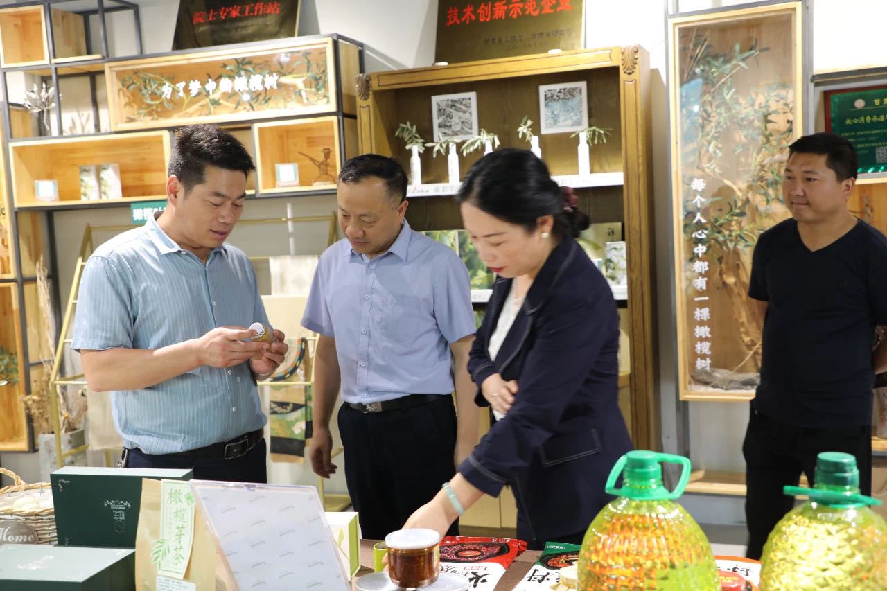 在產(chǎn)品體驗區(qū)王總向王處長一行介紹了祥宇特級初榨橄欖油、橄欖茶、橄欖菜、橄欖保健品等系列產(chǎn)品,