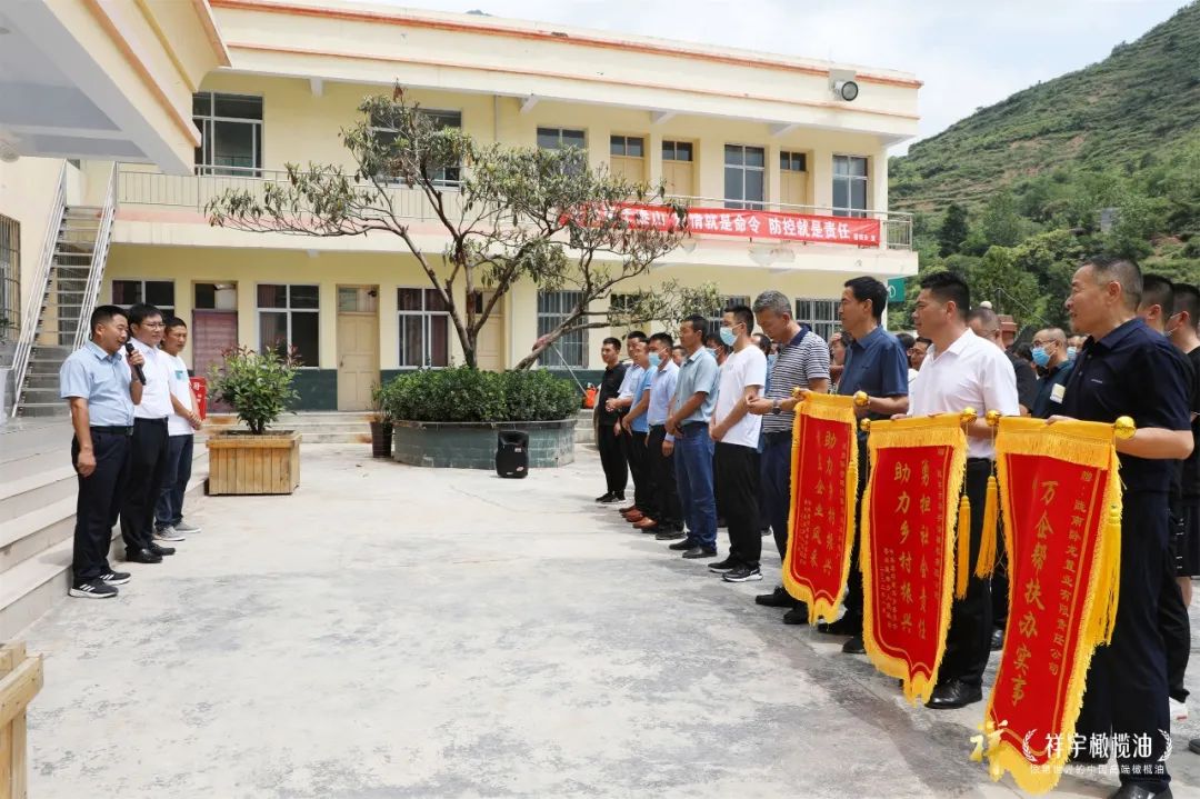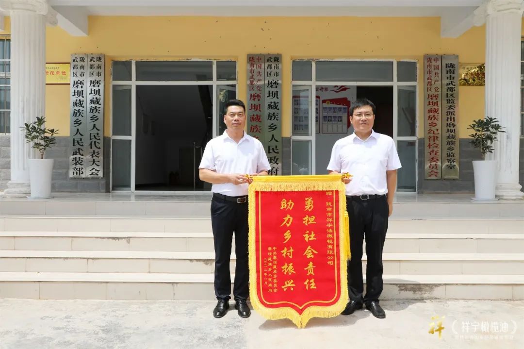 捐贈(zèng)儀式結(jié)束后磨壩鄉(xiāng)政府向祥宇公司回贈(zèng)了錦旗以表示感謝