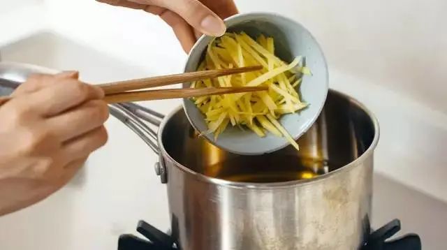 冷鍋入橄欖油,小火起鍋,并用竹筷測試油溫,